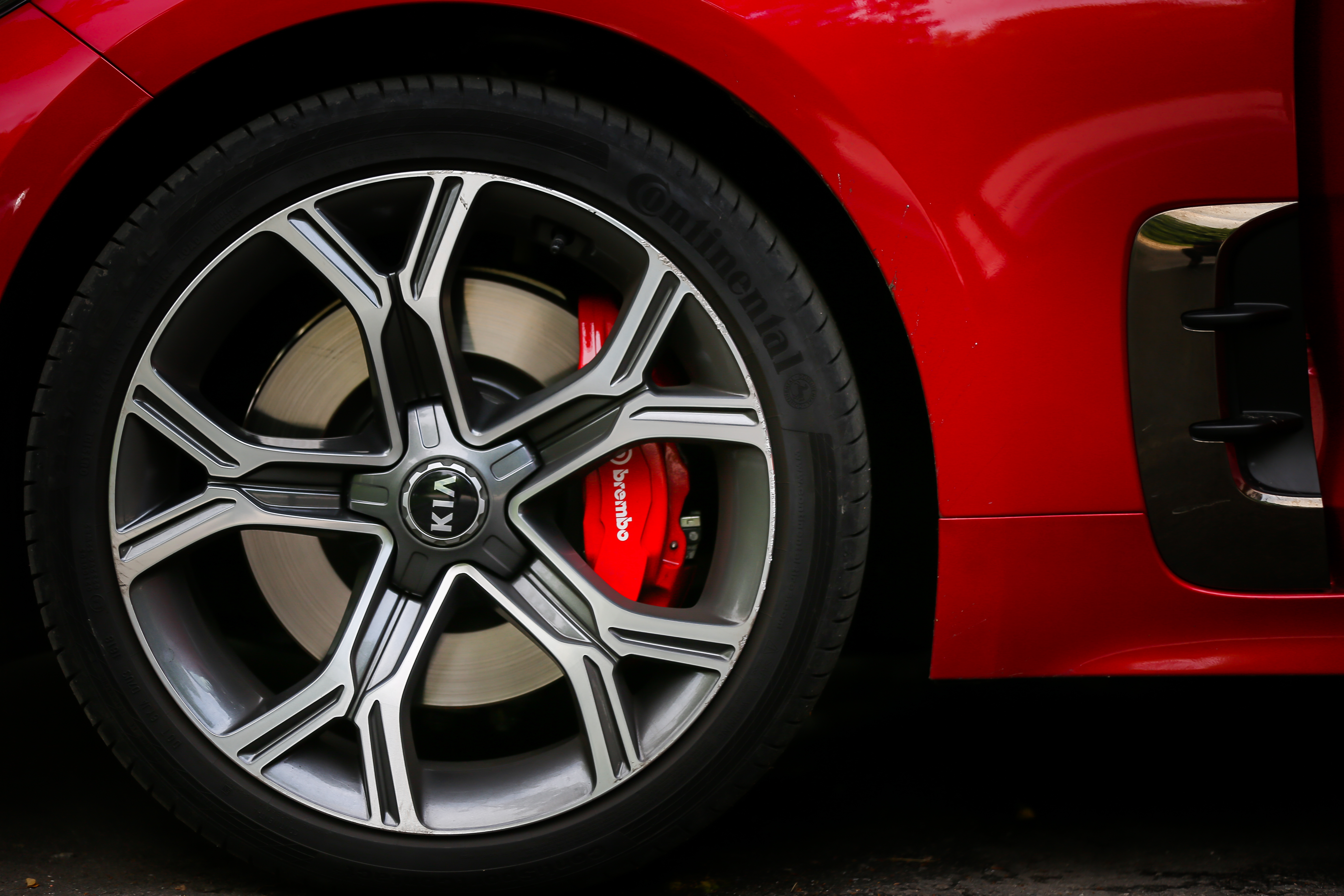 Kia Stinger în nivelul de echipare GT este o maşină despre care ai ce povesti. Coreeni au ştiut bine ce fac când au ales culoarea roşie. Nu există altă modalitate mai bună de a atrage atenţia la nivel vizual. Văzută printre celelalte maşini arată ca o stică de Coca-Cola, stârnind totodată pofta de aventură. Pe lângă forma sportivă de coupe în patru uşi, prizele de aer şi aripile curbate ale roţilor contribuie la eficienţa aerodinamicã.