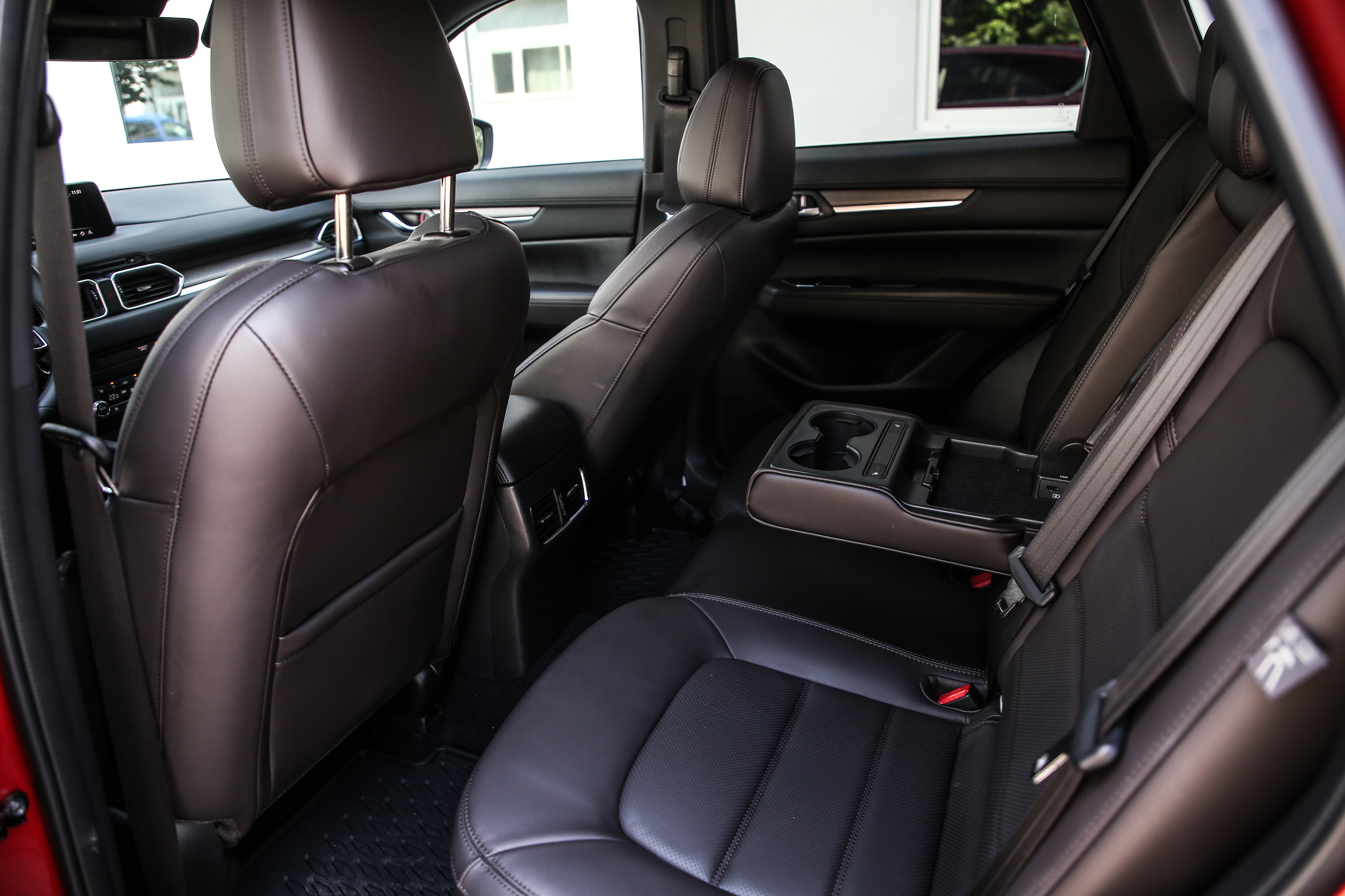 Dacă la restul capitolelor stă bine, nu pot să înţeleg cum au fost gândite cotierele la CX-5. Cea din faţă este poziţionată mult prea în spate şi nu este extensibilă, deci o atingeam cu vârful cotului la poziţia normală de condus. Poţi să-ţi tragi volanul în spate şi scaunul la fel, însă tai puternic spaţiul pentru picioarele pasagerilor. Cea din spate se coboară din spătarul banchetei şi conţine butoanele de încălzire a scaunelor spate, suporturi de pahare şi un spaţiu de depozitare. Problema este că dacă se află 3 persoane pe bancheta din spate, nu se pot acţiona comenzile de încălzire în banchetă, pentru că sunt în cotiera ridicată.