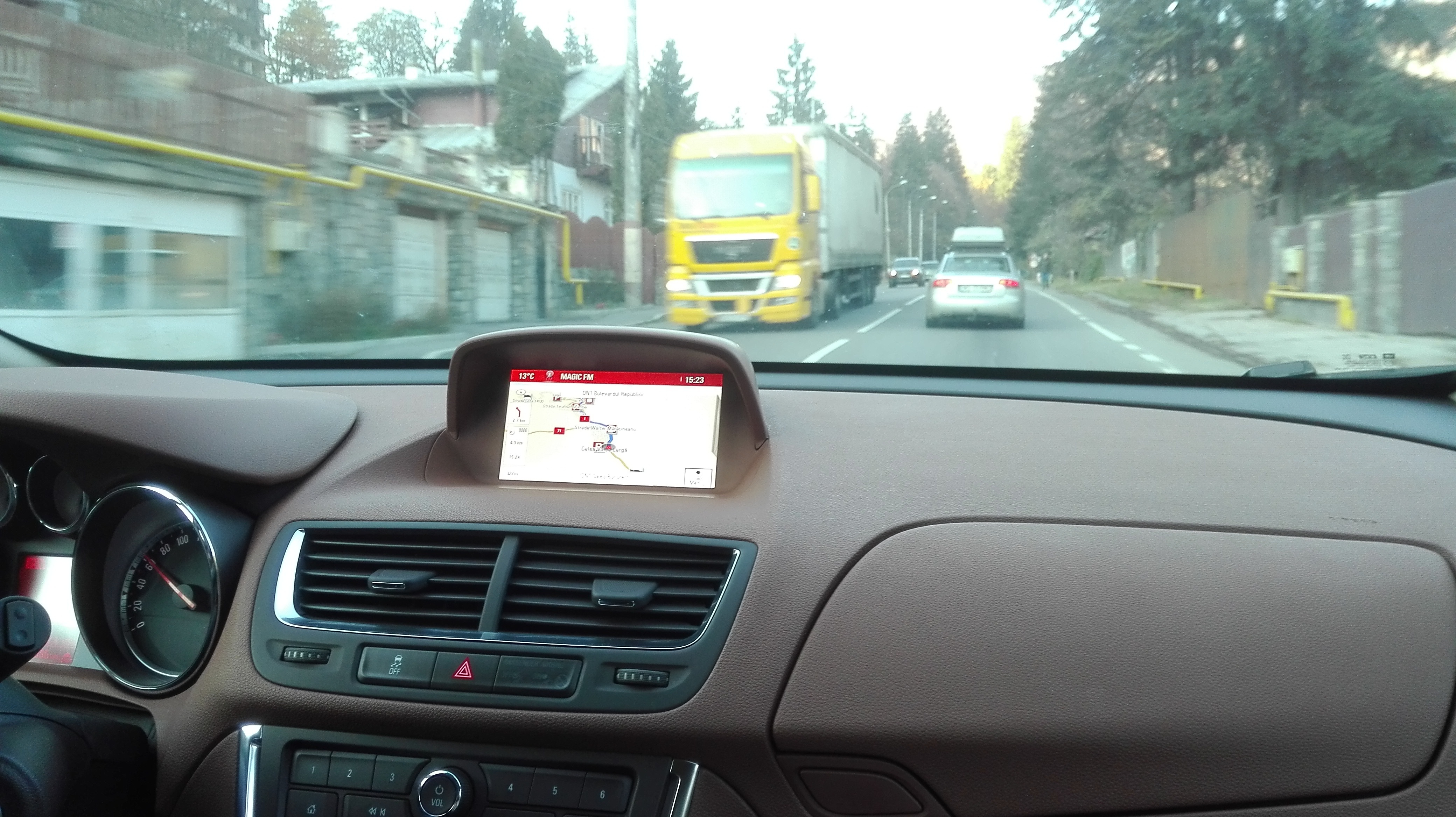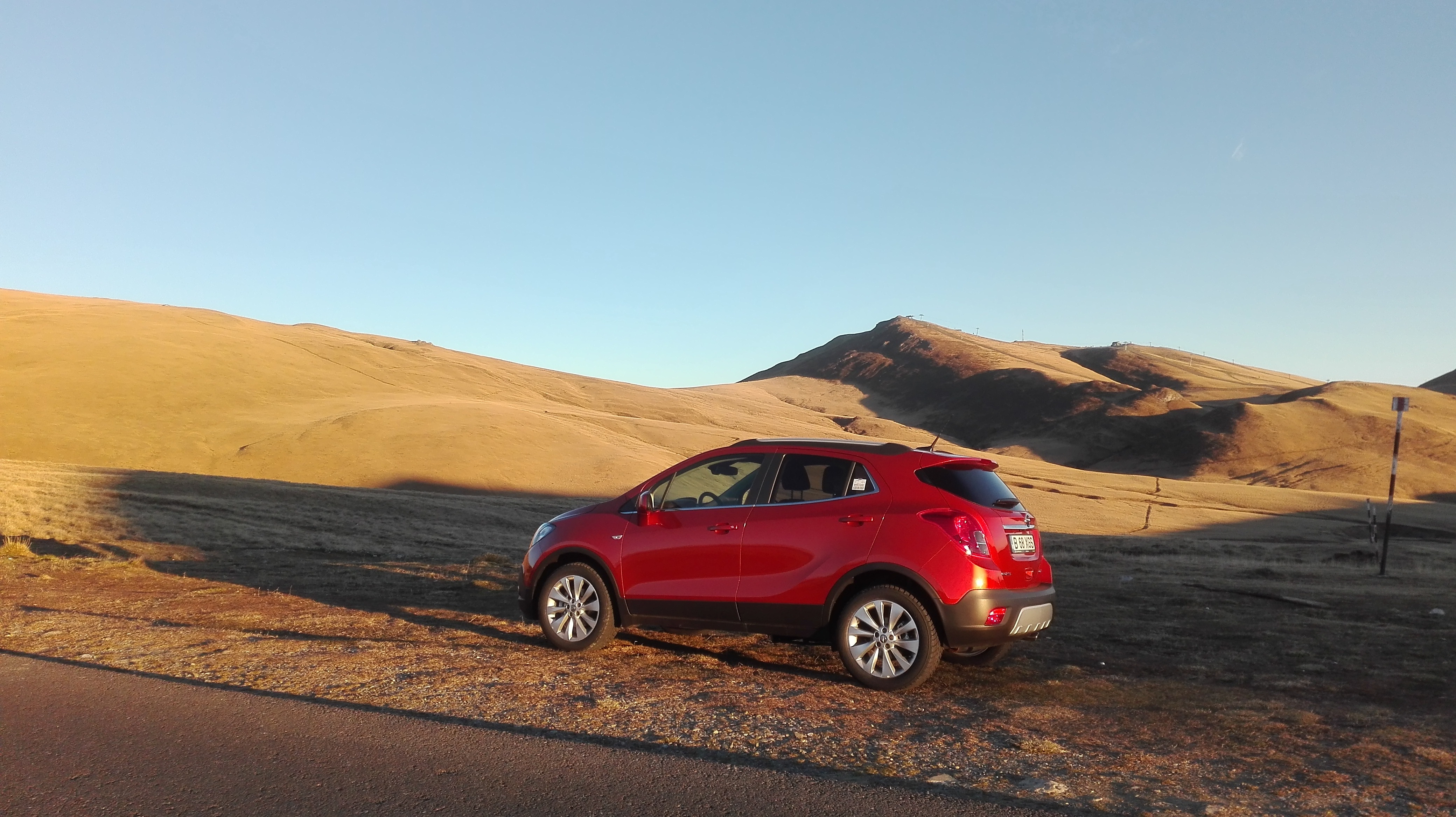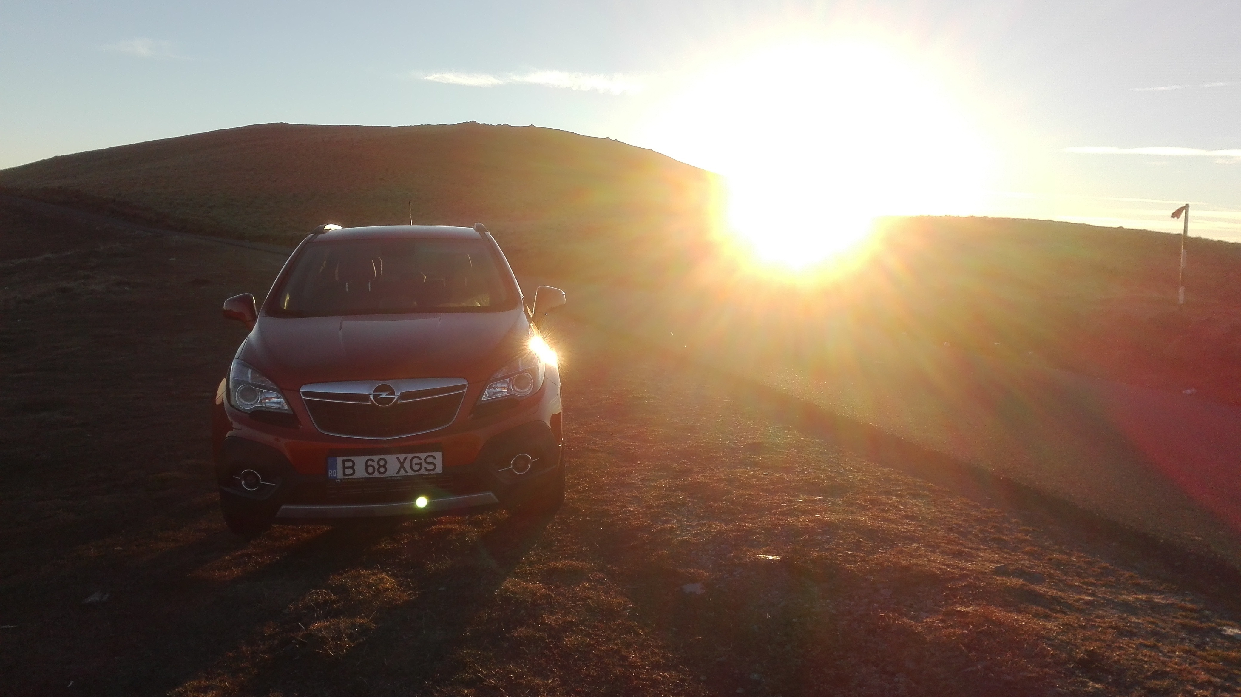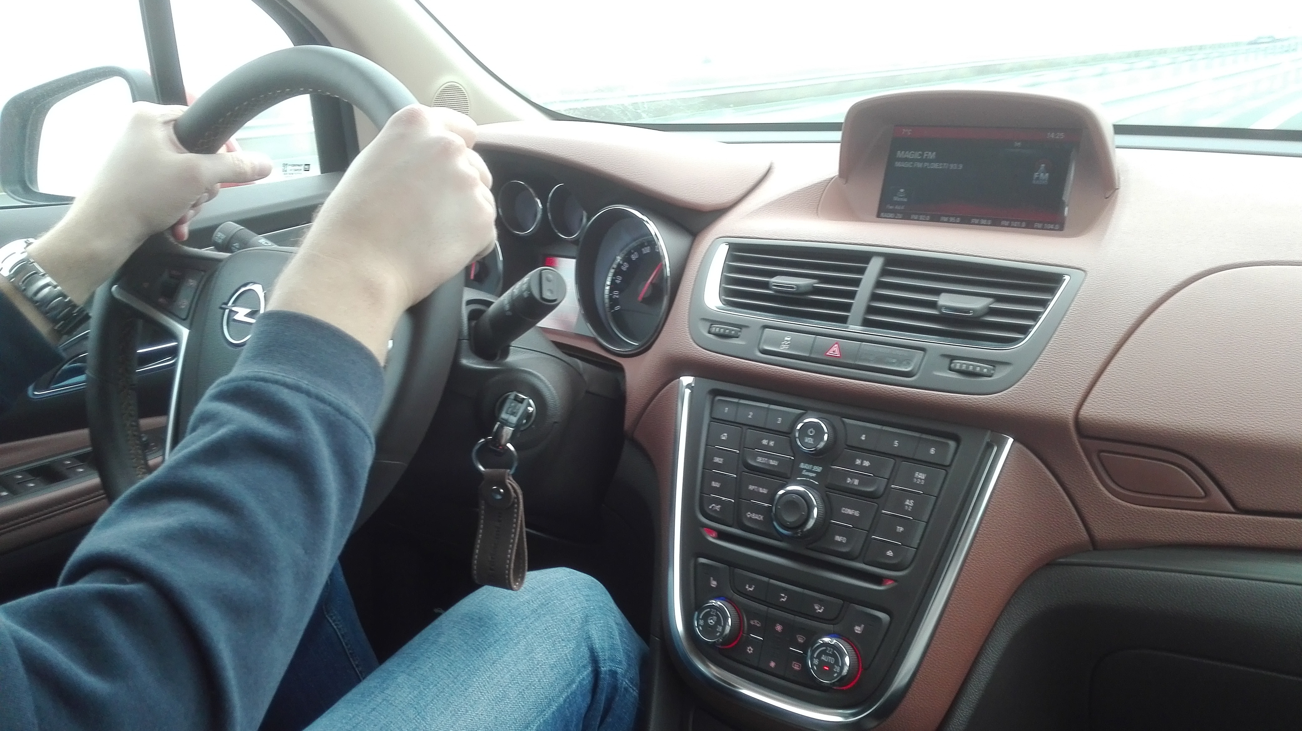 Am pornit la drum cu un Opel Mokka diesel, de 1,6 litri şi 136 de cai-putere. Cuplul maxim este de 320 Nm, disponibil de la 2000 de rotaţii, şi se simte cum maşina începe să tragă de la turaţii joase. Maşina primită la test avea o cutie manual cu 6 trepte, tracţiune integrală şi putem spune că era “full options” în adevăratul sens al sintagmei, fără iz de târg auto.