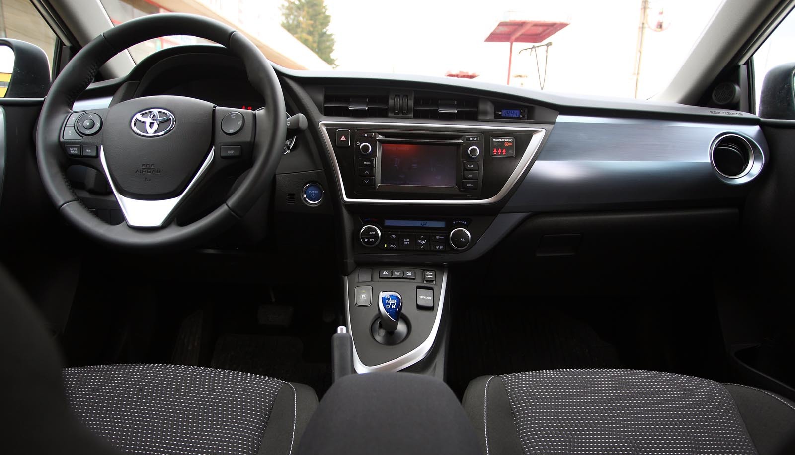 Modelul Auris Hybrid din test nu arată în interior că e o maşină eco decât prin micul schimbător albastru, în rest părând o compactă obişnuită. Unde termenul ”obişnuită” se referă şi la nivelul bun de spaţiu pe care îl oferă maşina, bancheta fiind suficient de spaţioasă pentru trei persoane, spaţiul la cap fiind doar decent pentru persoanele mai înalte.