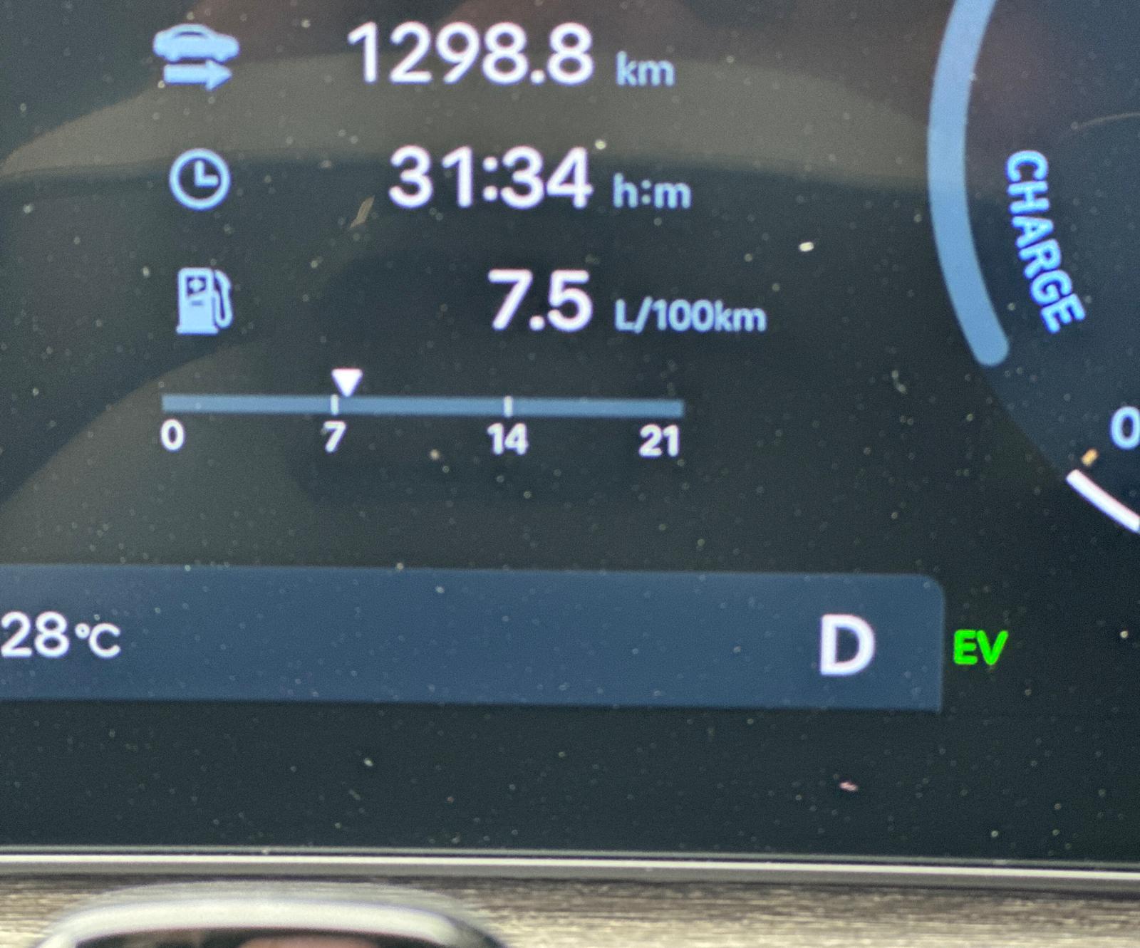 Bateria are o capacitate de 13,8 kWh, suficientă pentru o autonomie reală între 42 și 53 km în regim exclusiv electric, în funcție de stilul de condus și condițiile de drum. În oraș, cu un stil de condus eficient și utilizarea regenerării de energie (reglabilă în trei trepte prin padelele de pe volan), se poate obține un consum mediu sub 3 litri/100 km. Cu bateria epuizată, consumul din testul nostru s-a stabilizat la 7,5 l/100 km în regim mixt (urban + extraurban). Un detaliu interesant este că autonomia electrică nu scade niciodată sub 13 km, semn că sistemul păstrează o rezervă pentru momentele în care motorul electric este necesar.