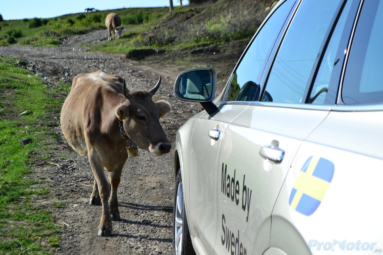 În fine, aduce şi două noutăţi majore: dacă ieşi din greşeală de pe drum va pregăti instantaneu sistemele de siguranţă pentru a-ţi mări şansele de supravieţuire şi-ţi va proteja coloana vertebrală printr-o structură metalică încorporată în spătarul scaunelor; dacă vrei să faci stânga prin faţa unei alte maşini, va frâna automat pentru a preveni coliziunea. Apropo, din testul meu, am mai observat o funcţie utilă, despre care Volvo nu a scris nimic în comunicatele de presă: când vrei să schimbi direcţia de mers de pe o bandă pe alta şi urmează să ajungi în spatele altei maşini (scenariu: ai efectuat o depăşire şi efectuezi manevra de revenire în coloană, în spatele altei maşini), XC90 frânează uşor, cât să-ţi adapteze mai bine viteza la cea a maşinii în spatele căreia vrei să te repliezi.