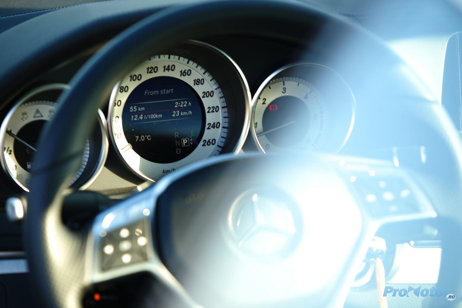 În ciuda faptului că versiunea coupé a lui E-Class stă pe platforma lui C-Class (strategie practicată încă de la CLK), senzaţia de la interior te duce cu gândul mai degrabă la un GT decât la un coupé sportiv. Cu toate că avantajele platformei de compactă sunt cât se poate de valabile (este mai uşor şi mai agil decât ar fi un E-Class Coupe pe platformă de… E-Class), senzaţia pe care o livrează E-Class Coupé te face să-ţi doreşti mai degrabă promenade lungi decât ture scurte saturate de turaţii ridicate.