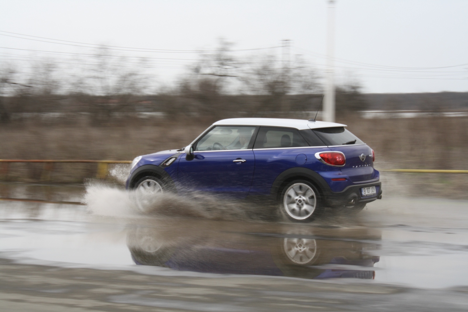 În ceea ce priveşte ţinuta de drum, Paceman dă dovadă de stabilitate şi ruliu redus, însă efectul pronuţat de torque-steering va face ca volanul să-ţi joace în mâini la demaraje mai ferme. Totuşi, acceleraţia este liniară şi simţi cum acul vitezometrului se deplasează spre dreapta, iar în depăşiri maşina îşi dă o senzaţie de siguranţă pentru că îţi pune pe tavă destule resurse ca să te scoată dintr-o eventuală situaţie neplăcută.