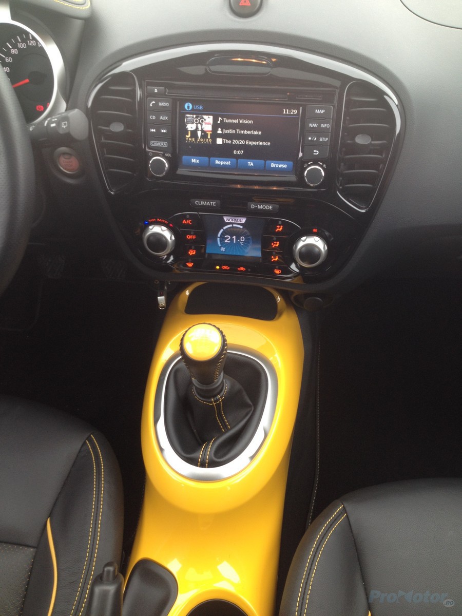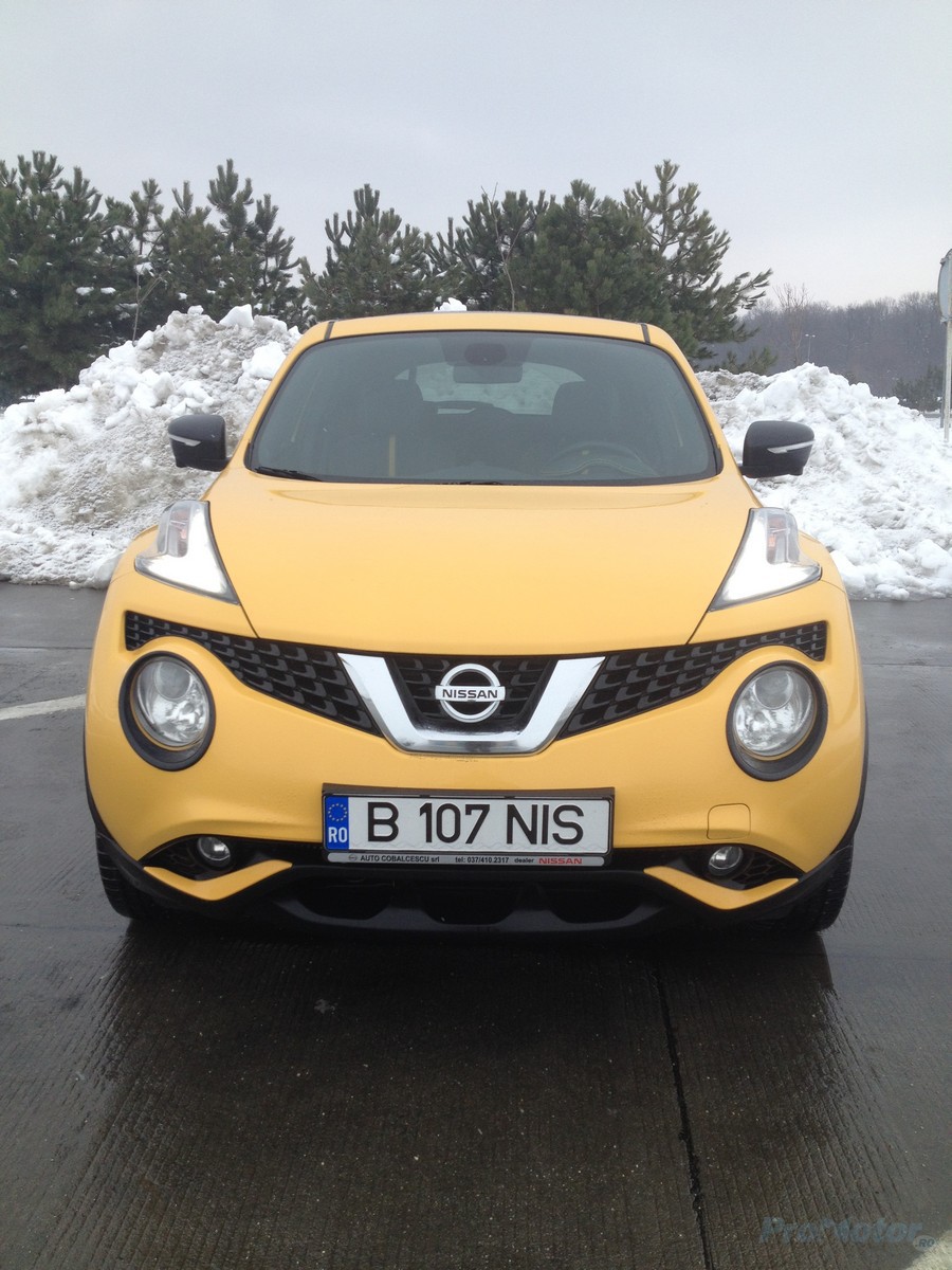 Aşadar, cu pachetul exterior pe care îl vedeţi în imagini, Juke facelift a reuşit să întoarcă multe capete prin oraş, chiar dacă l-am putea apostrofa pentru faptul că arată ca Bumblebee (Chevrolet Camaro) după tradiţionalele mese de sărbători.