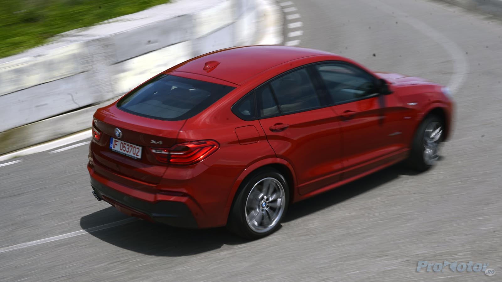 Agilitatea e mai bună şi decât în cazul lui BMW X3, şi nu vorbesc doar de o chestie sesizabilă: pur şi simplu, puntea spate a lui X4 este mai responsivă datorită înlocuirii caroseriei de tip break cu una coupe-cu-patru-uşi. Aşa încât BMW X4 se dovedeşte clar mai sportiv, mai ales dotat cu acest propulsor de top pe benzină.
