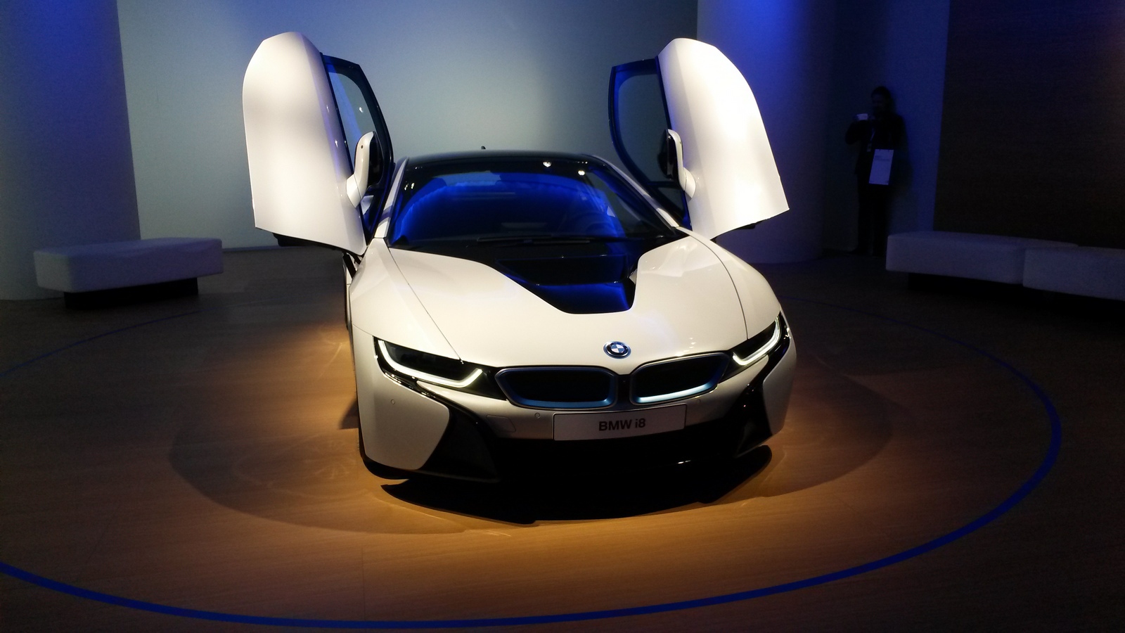 Vineri, ora 18.00, Milano – am reuşit să văd de aproape noul BMW i8 – spre deosebire de saloanele auto, acum am putut să ne urcăm în voie în maşină, să o pipăim şi să ne imaginăm cum o vom conduce mâine. Este un amestec de noutate absolută şi sentiment de deja vu – de la portierele foarte uşoare care se ridică pentru a putea intra rapid în maşină, până la modul în care e gândit bordul, nou şi clasic deopotrivă.