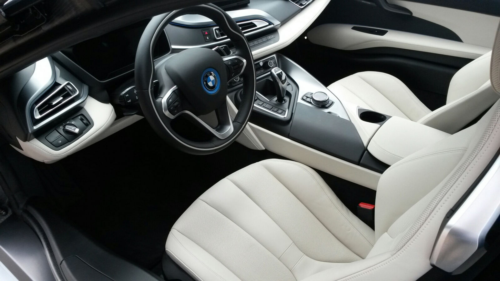 La interior, BMW a ales să nu joace aceeaşi carte super-eco din i3, aşa că avem totuşi materiale de foarte bună calitate, de la pielea de pe scaune, la plasticele moi şi arătoase din restul habitaclului. Evident, vorbim de un supercar 2+2, aşa că locurile din spate vor fi dedicate mai degrabă bagajelor, pentru că portbagajul este minuscul şi nu încape în el decât o geantă de voiaj şi încărcătorul electric al maşinii.