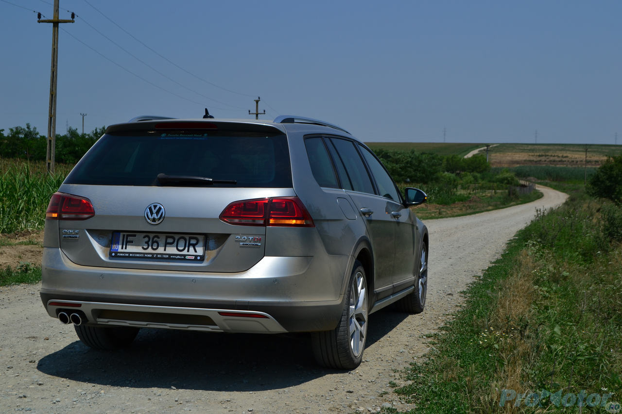 Alltrack are totuşi sistemul de tracţiune 4Motion care permite, la nevoie, activarea modului offroad. Asta înseamnă că vei beneficia de Hill Descent (asistenţă la coborârea în pantă), răspunsul motorului şi ABS-ului este modificat pentru a permite aderenţa mai bună la suprafaţa de drum, iar cuplul de pe puntea faţă poate fi mutat parţial pe puntea spate, pentru a scoate maşina din încurcătură. Pe drumurile de ţară abordate în forţă, Alltrack a rămas stabil, ajutat de tracţiunea integrală, în special atunci când efectuam viraje prin nisipul şi macadamul de pe drum.