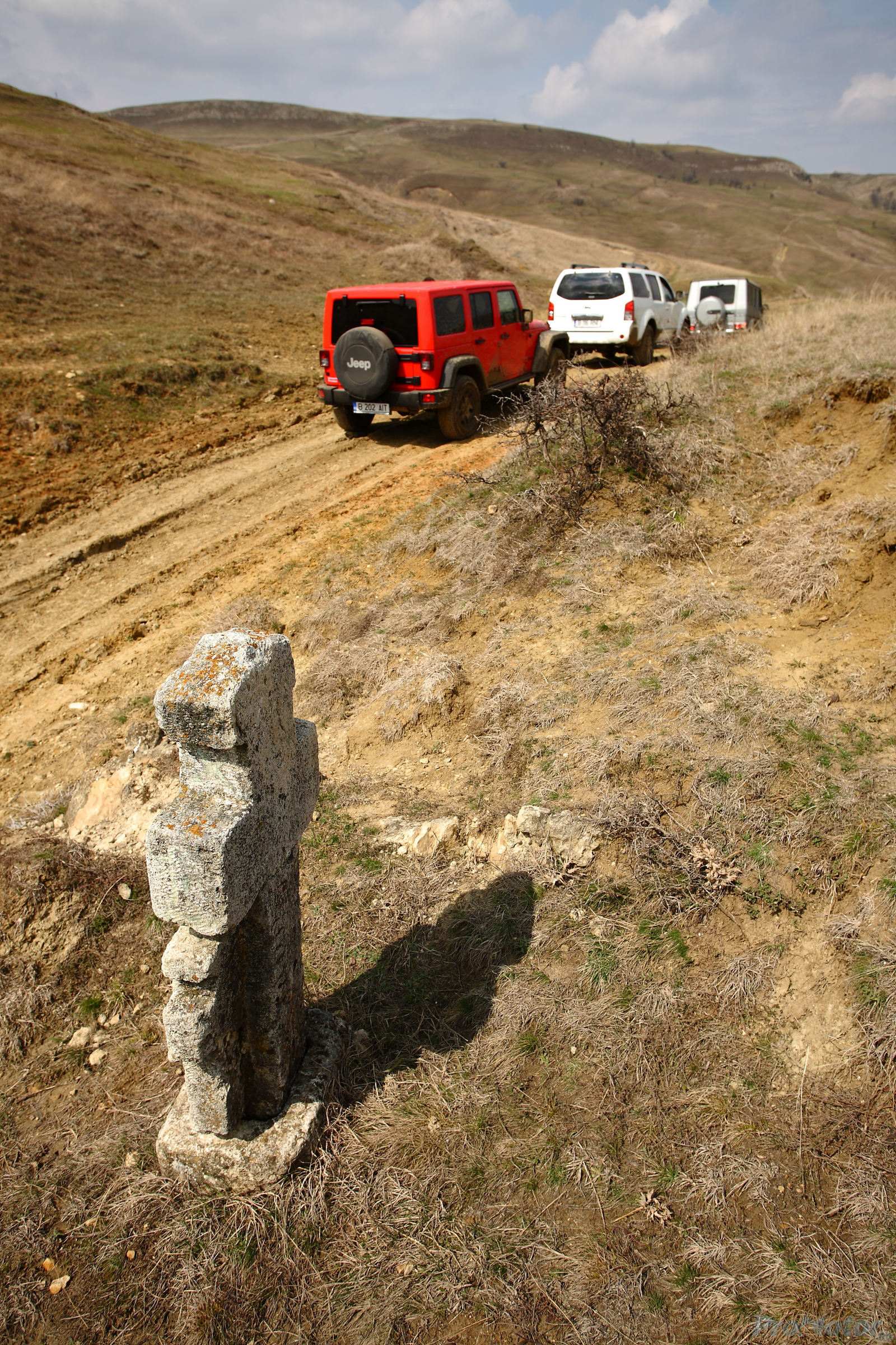 Dezamăgiţi de macadamul în bună stare de lângă cramele Halewood, Blaga şi LacertA, am urcat prin Finţeşti şi am abordat drumurile de pământ care traversau coastele dealurilor piemontane din zonă. Uscat, uscat cât vedeai cu ochii, aşa cum se întâmplă numai într-o primăvară secetoasă, cum a fost cea din 2013. Şi deodată…