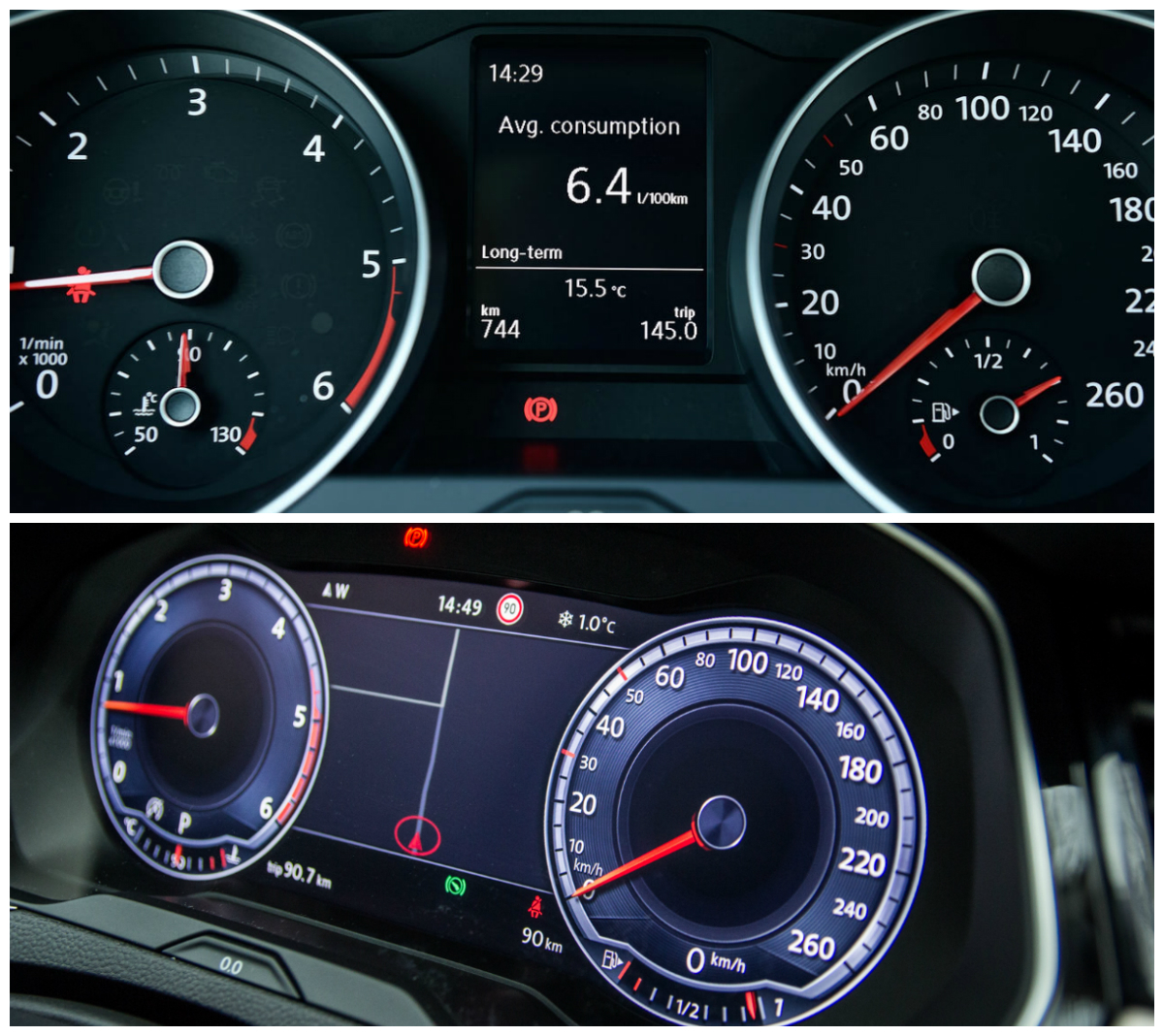 Diferenţa dintre indicatoarele „normale” şi ecranul digital de la Passat e uriaşă. Optează pentru al doilea, neapărat!
