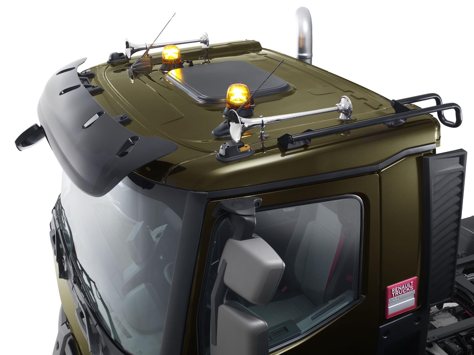 Noua identitate de marcă a camioanelor Renault Trucks este dată atât de aspectul robust al cabinei, cât şi de design-ul parbrizului înclinat la un unghi de 12 grade. Acest lucru are rolul de a îmbunătăţi coeficientul aerodinamic cu până la 12%.