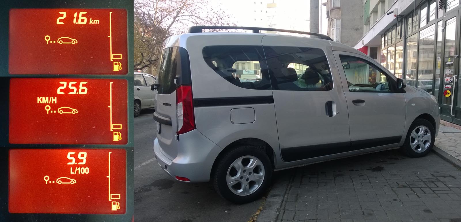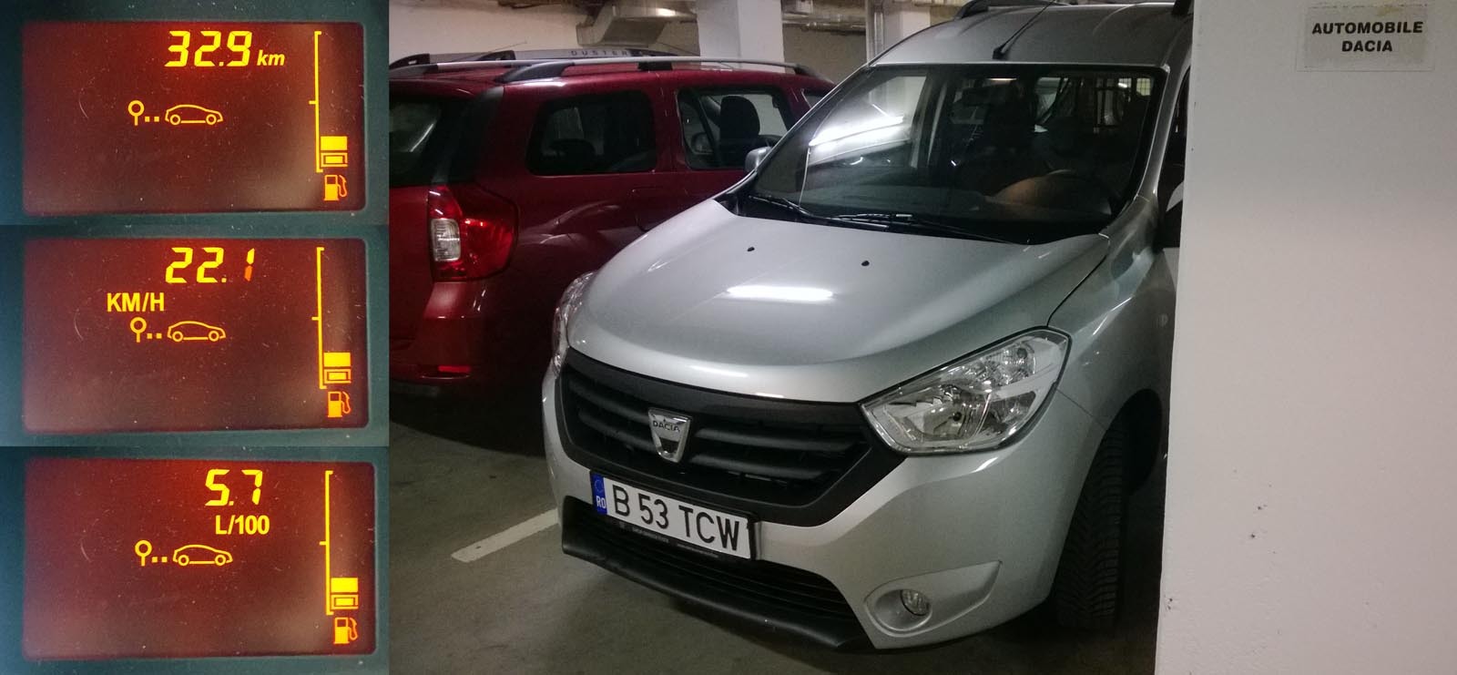 În dimineaţa în care am dus înapoi maşina la Dacia România a fost destul de frig (nu ştiu cât de frig, deoarece politica low-cost a dictat neutilarea Dokker-ului cu un termometru pentru temperatura exterioară). Aşa încât mă aşteptam ca, faţă de momentul preluării maşinii, să am parte de un consum urban mai mare.