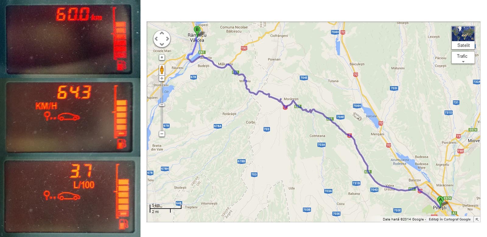 Aşa încât mi-am asumat rolul de tătic foarte conştiincios, abordând un stil cuminte, fără bruscarea maşinii. Ceea ce explică valoarea foarte bună a consumului obţinut, de lăudat mai ales în condiţiile de alternanţă a suişurilor şi coborâşurilor de pe dealurile vâlcene.