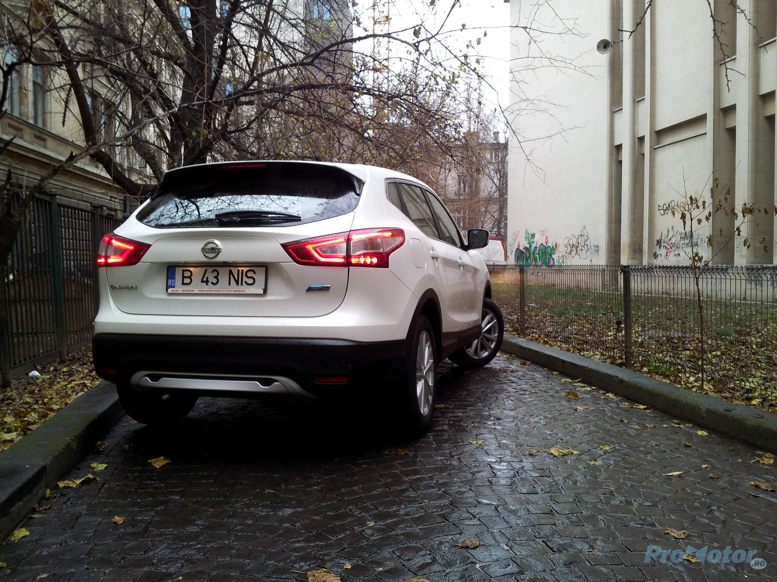 Ca să nu lungesc prea mult vorba, o să trec direct la subiect. Am un Nissan Qashqai pe care o să-l conduc în următoarele două săptămâni, timp în care ar trebui să adun vreo 2.000 km la bord. Are un motor diesel de 1,5 litri cu 110 CP, cutie de viteze manuală cu şase trepte şi tracţiune faţă. Este în varianta de echipare de mijloc denumită Acenta – adică are scaune cu tapiţerie din stofă, nu are faruri cu Xenon şi nu are scaune încălzite.