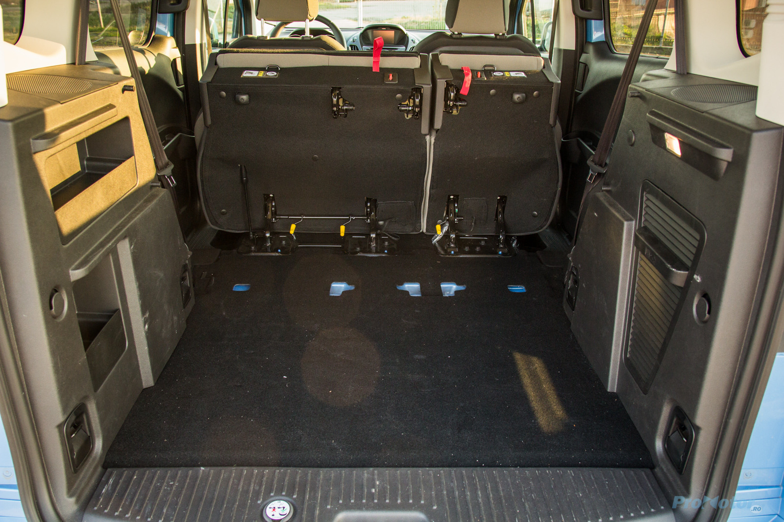 Poliţa din portbagaj nu e prinsă cu nimic de hayon, aşa că trebuie să o ţii cu mâna dacă ai de pus mai multe lucruri în portbagaj şi – crede-mă – o să o scapi şi o să îţi cadă în cap. De mai multe ori. În schimb, poate fi aşezată în două poziţii (cea de sus, normală, şi una la jumătatea înălţimii portbagajului) şi are un loc de depozitare în spatele spătarelor banchetei.