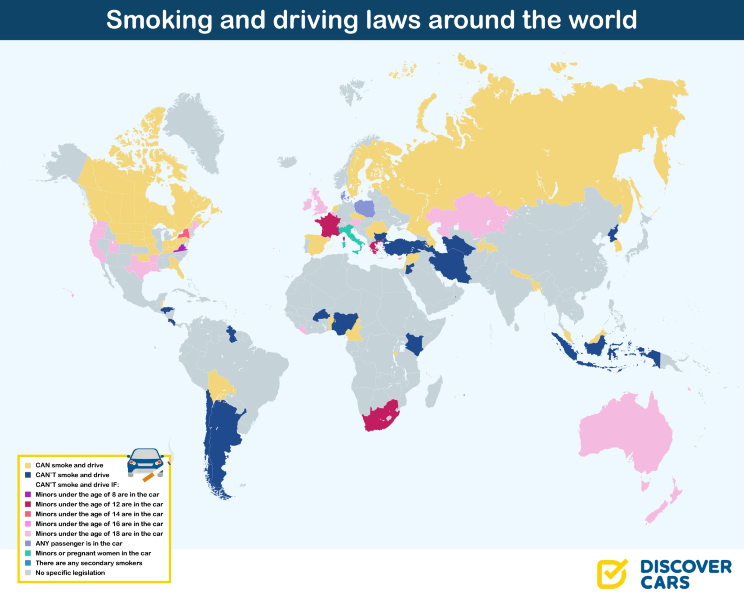 Este și cazul aprinderii unei țigări în mașină, fie că ești șoferi sau pasager. O acțiune care pare naturală la noi în țară este pedepsită în numeroase țări, în special atunci când în mașină se află copii. Pentru a te ajuta să păstrezi plăcerea concediului nealterată, cei de la DiscoverCars.com au întocmai o hartă a țărilor în care fumatul în mașină este permis și cela în care nu este permis, sau este permis cu restricții.
