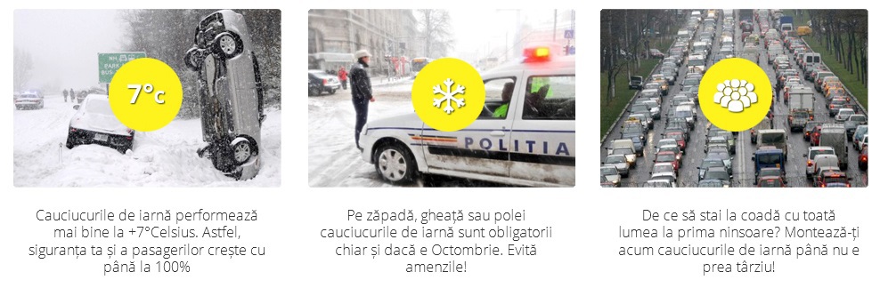 Comandă anvelope de iarnă, după dimensiuni şi mărciAnvelopele de iarnă au o compoziţie şi o amprentă diferită de cea a anvelopelor de vară, cu un procentaj mai mare de cauciuc natural şi silică in compoziţie, ceea ce face să nu se întăreasca atât de tare ca şi cauciucul sintetic în condiţii de iarnă, rezultând o aderenţă sporită pe carosabilul umed şi alunecos. În condiţiile sezonului rece, atât anvelopele de vară cât şi cele pentru toate anotimpurile devin mai tari, scade elasticitatea, în consecinţă au performanţe inferioare celor de iarnă, iar distanţa de frânare pe zăpadă fiind cu 50% mai mare decât în cazul anvelopele de iarnă. Euromaster vine în întâmpinarea şoferilor cu un modul online de comandă rapidă a avenlopelor de iarnă, pe tabletă, telefon sau laptop, programând posesorii auto  în centrele de service, cu acoperire naţională.